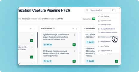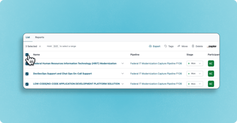 Managing pursuits just got a lot faster. Instead of updating opportunities one by one, you can now select multiple pursuits and take action on all of them at once.