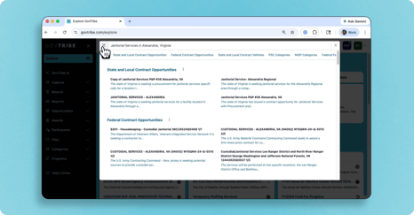✓ Use GovTribe alongside your other tools, all in one place